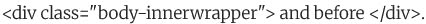 Use the class .body-innerwrapper to assign the module positions custom-header and custom-footer.