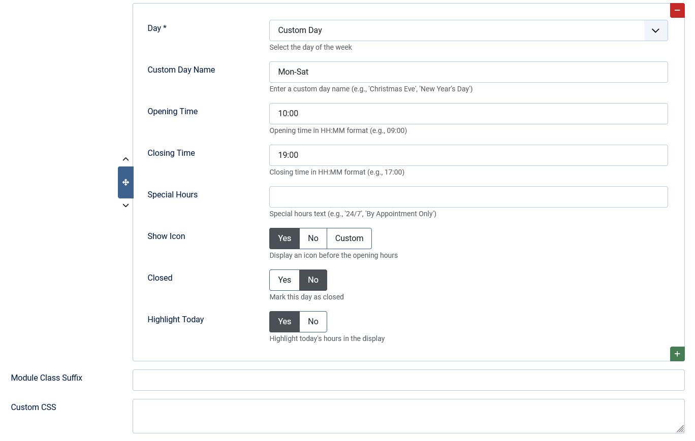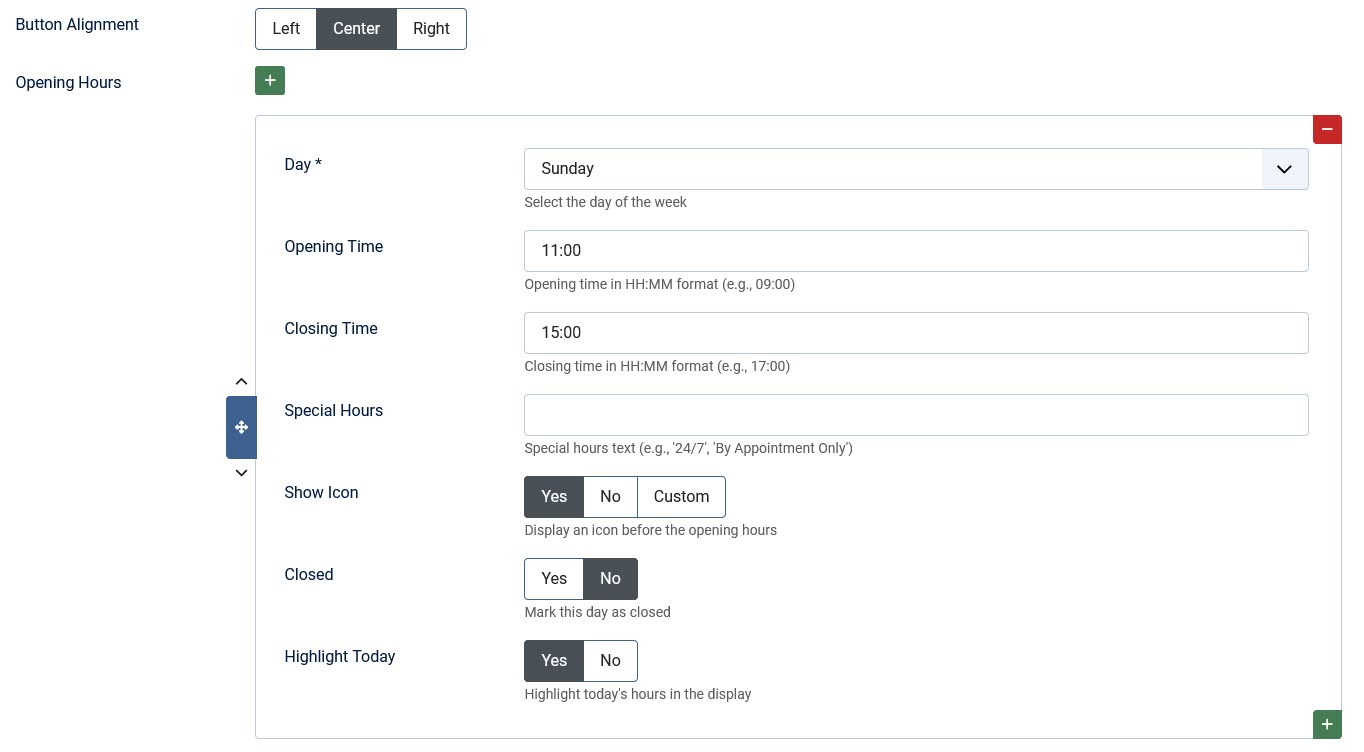 ★ Today Highlighting - Automatically highlights today's hours with a "Today" badge