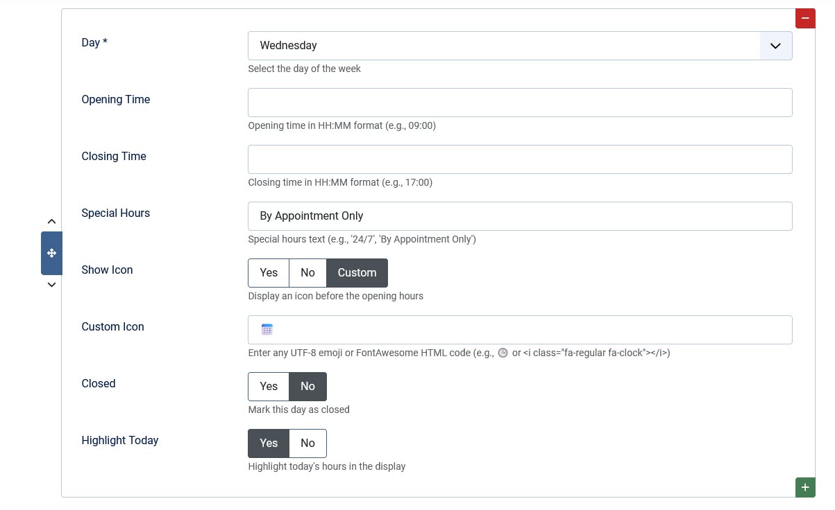 ★ Icon Customization - Add custom icons or emojis to each day's hours